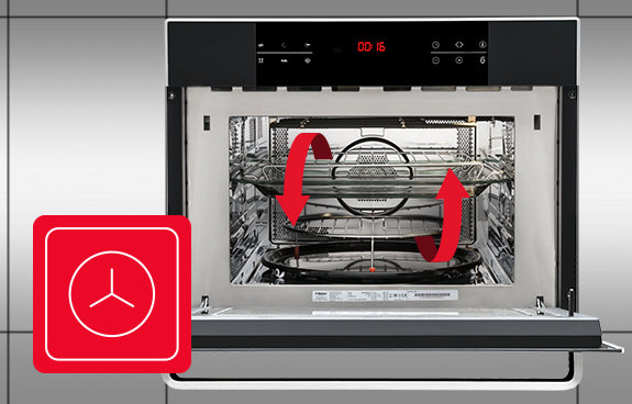 Oszczędź swój czas i skróć pracę kuchenki mikrofalowej dzięki funkcji Termoobiegu, która za sprawą nowoczesnego wentylatora równomiernie rozprowadzi powietrze we wnętrzu urządzenia!