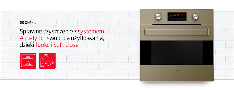 Wygodne czyszczenie piekarnika, dzięki supergładkiej strukturze emalii AquaRealEase®.Soft Close - miekkie domykanie