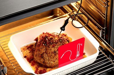 Jeśli często zdarza Ci się przyrządzać duże porcje mięs - na pewno docenisz Termosondę, dostępną w piekarnikach Amica. To właśnie dzięki niej możesz na bieżąco kontrolować temperaturę panującą wewnątrz przyrządzanej potrawy - bez ryzyka, że będzie ona niedopieczona!