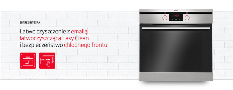 Wykorzystanie w piekarnikach Amica emalii łatwoczyszczącej Easy Clean wpływa nie tylko na estetykę wnętrza, ale także na wygodę użytkowania. Dzięki wyjątkowo gładkiej powierzchni, łatwiej będzie Ci utrzymać piekarnik w nieskazitelnej czystości.