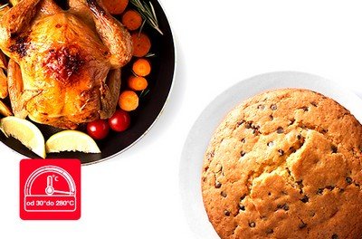 Szeroka skala temperatur, od 30 do 280 ºC, to zapewnienie wszechstronności urządzenia i jeszcze większy komfort pracy w kuchni dla Ciebie. Niski temperatury wykorzystasz do wyrastania ciasta, wysokie natomiast idealnie nadają się do pieczenia mięs.