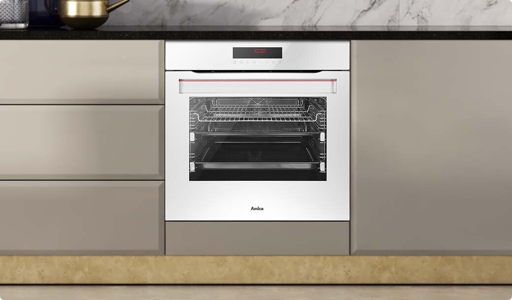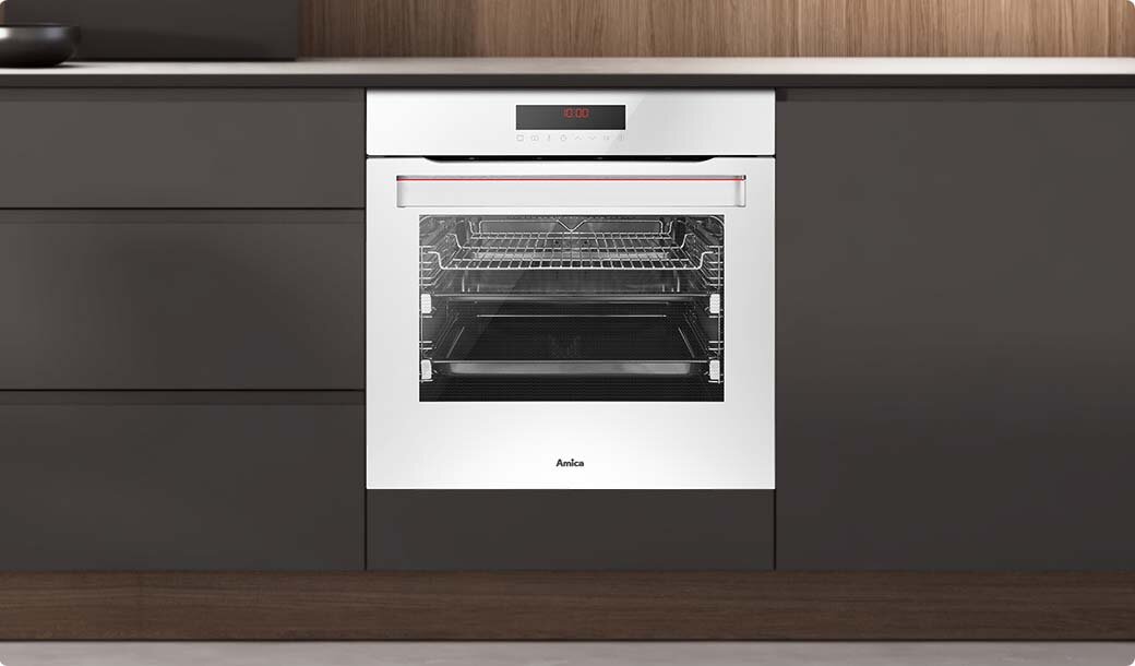 Masz dość szorowania piekarnika? Jest na to sposób! W piekarnikach Amica na ścianach bocznych i ścianie tylnej zastosowane zostały specjalne prostokątne panele, które dzięki porowatej powłoce rozkładają cząsteczki zanieczyszczeń. By oczyścić takie wkłady, wystarczy ustawić piekarnik na 250°C na jedną godzinę. Co ważne, z czasem panele możesz wymienić. Wniosek jest prosty: przyjemna czystość i pełen komfort.