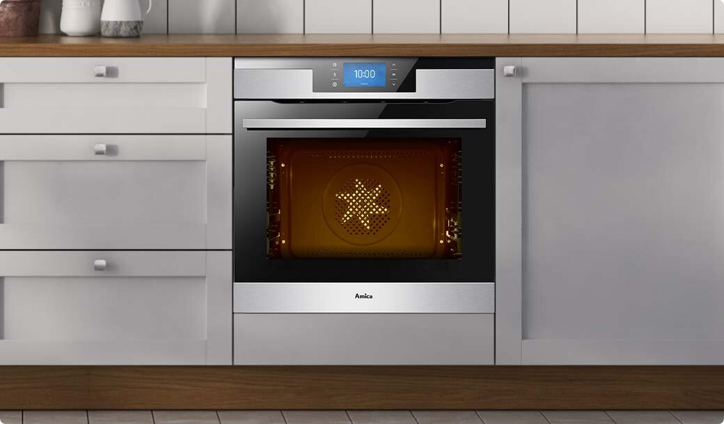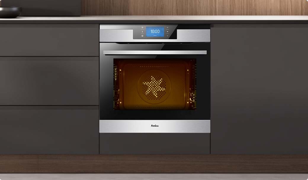 Wysuwając rozgrzaną blachę z gorącą potrawą łatwo o poparzenie i ryzyko upuszczenia blachy. Nie w piekarnikach Amica! Wszystko za sprawą prowadnic, które wyposażone zostały w specjalne wybrzuszenia wyhamowujące wsuwanie i wysuwanie. Dzięki nim możesz w pełni bezpiecznie, bez ryzyka poparzenia, wsunąć i wysunąć nawet rozgrzaną i mocno obciążoną blachę.