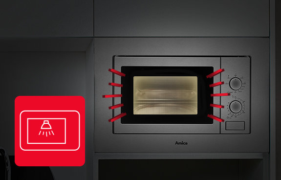Dzięki oświetleniu halogenowemu w kuchenkach mikrofalowych Amica możesz w dowolnym momencie sprawdzać, w jakim stanie jest Twoje danie podczas procesu podgrzewania lub rozmrażania. Kontroluj sytuację na bieżąco!