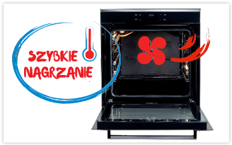 Szybkie nagrzewanie Booster to funkcja znacznie ułatwiająca pieczenie. Po jej włączeniu piekarnik wykorzystuje wszystkie dostępne źródła ciepła, by szybko osiągnąć zadaną temperaturę, po czym wraca do nastawionego trybu pieczenia. Dzięki tej funkcji nie musimy martwić się, że zapomnieliśmy odpowiednio wcześnie rozgrzać piekarnik.