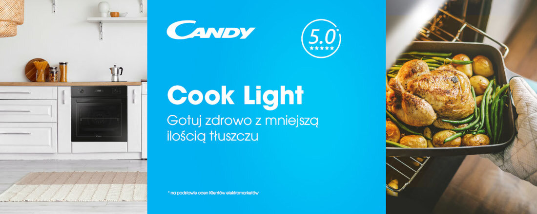 Żyj świadomie i gotuj zdrowiej wybierając funkcję Cook Light, która pozwala ograniczyć użycie oleju lub tłuszczu. Znakomite rozwiązanie jakim jest połączenie grilla z pulsacyjną pracą wentylatora istotnie skraca czas pieczenia i powoduje, że przygotowywane potrawy zachowują więcej wilgoci, co czyni je soczystymi i wyjątkowo smacznymi.