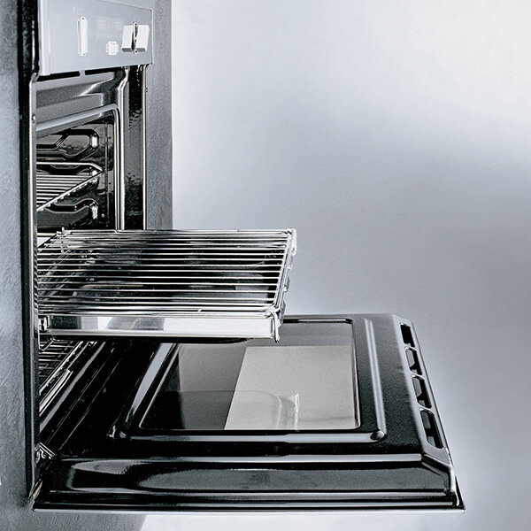 Prowadnice teleskopowe, w które wyposażona jest komora piekarnika, pozwalają na całkowite wysunięcie blachy na zewnątrz, dzięki czemu uzyskasz bezpieczny i niezwykle wygodny dostęp do przygotowywanych potraw.