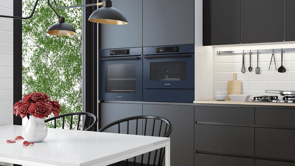 Piekarnik do zabudowy pochodzi z linii BESPOKE - która charakteryzuje się eleganckim wykończeniem i dostępnością w nowoczesnych kolorach - czarne szkło, granat, satynowy beż oraz biały. Wybierz kolor idealnie pasujący do Twoich preferencji i wyglądu całego wnętrza.
