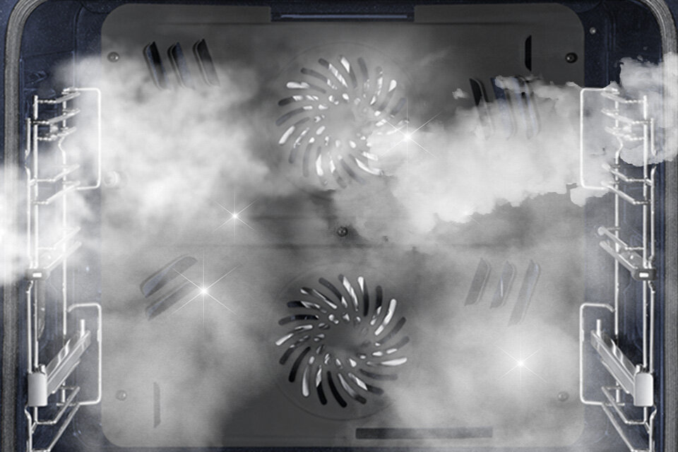Para wodna skrapla się w dolnej części piekarnika podczas pieczenia w górnej części piekarnika z użyciem separatora.