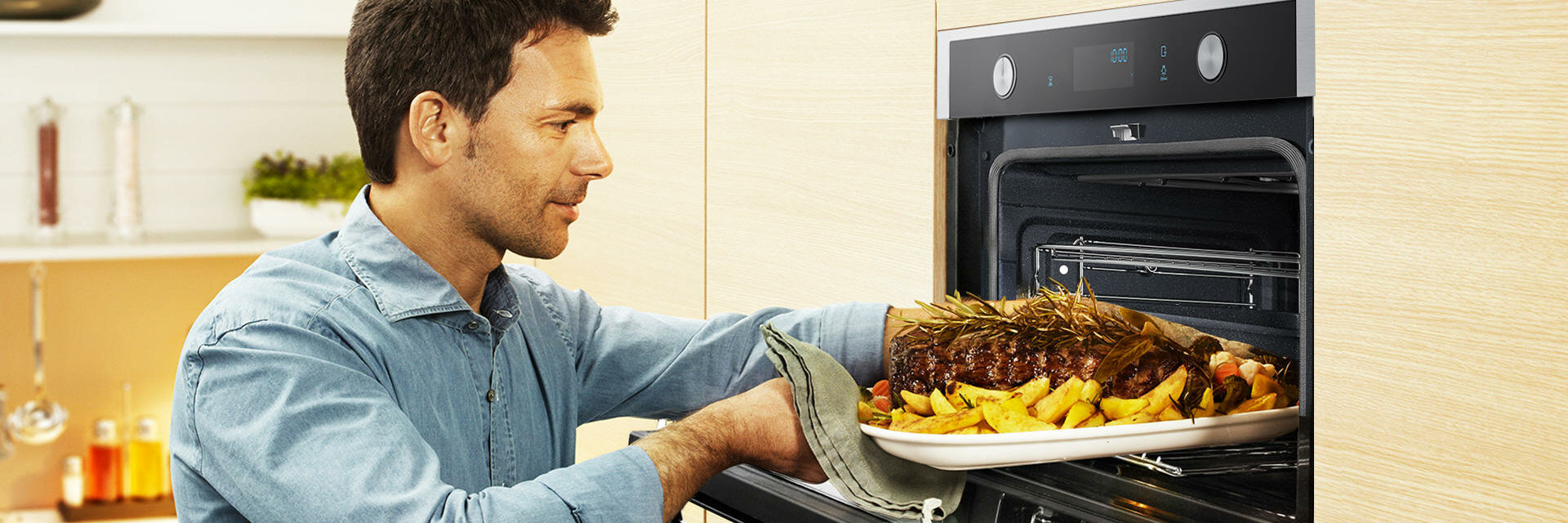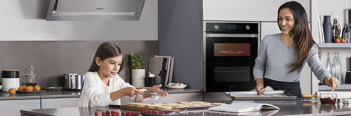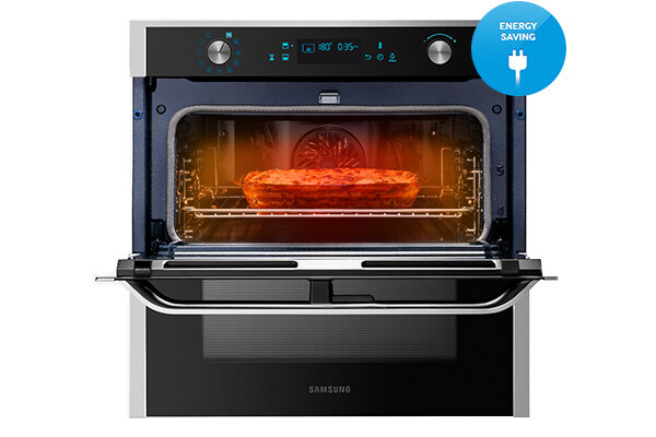 Samsung Dual Cook™ to piekarnik, którego wnętrze zostało podzielone na dwie komory z niezależną regulacją temperatury, dzięki czemu możesz przygotować dwa różne dania w tym samym czasie. Obydwa w optymalnych warunkach pieczenia i bez ryzyka mieszania się ich aromatów. To oszczędność czasu i energii.