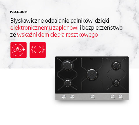Dzięki innowacyjnemu rozwiązaniu, jakim jest Elektroniczny zapłon, możesz zyskać gwarancję płynnego, błyskawicznego i zawsze skutecznego odpalania palników urządzenia. Dodatkowo, jeśli z jakiegoś powodu płomień zgaśnie samoczynnie, płyta ponownie go odpali.