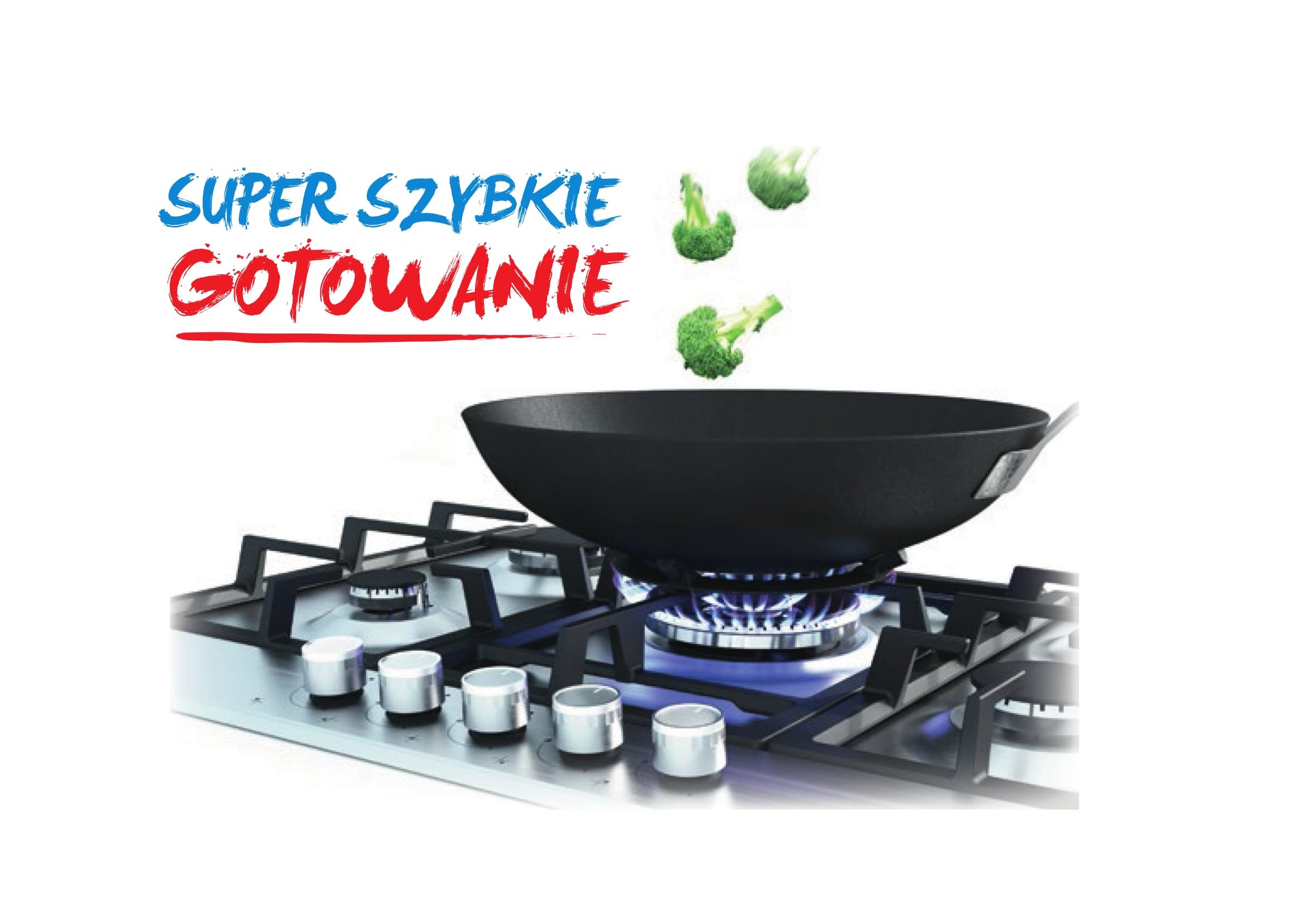 Palnik WOK | Dodaj mocy swoim potrawom Już nie musisz się martwić rozgotowanymi potrawami! Dzięki palnikowi WOK bardzo szybko uzyskasz wysoką temperaturę, która sprawi, że Twoje danie będzie przepysznie usmażone. Palnik WOK o dużej mocy ułatwia szybsze ogrzanie patelni. |