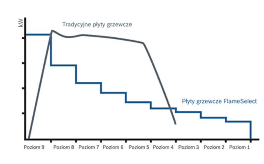 Funkcja FlameSelect pozwala idealnie dopasować wielkość płomienia, od małego do dużego, na dziewięciu z góry ustalonych poziomach. W przeciwieństwie do tradycyjnych płyt gazowych, urządzenia marki Bosch dają ci pełną kontrolę nad ustawieniami temperatury, co jest szczególnie ważne przy gotowaniu na średnim ogniu.