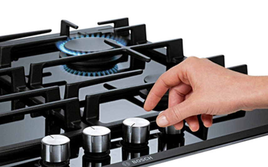 Nasze płyty gazowe są wyposażone w praktyczny, w pełni elektroniczny zapłon, dzięki czemu włącza się je jednym obrotem — bez wciskania i przytrzymywania. Wystarczy obrócić pokrętło tak jak na piekarniku, aby z łatwością wyregulować wysokość płomienia.