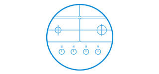 Płyta gazowa posiada moc 10,3 kW, rozłożoną na 4 palniki. Naczynia nagrzewają się błyskawicznie, a potrawy są szybko przygotowywane. Palniki są różnej wielkości, pozwolą korzystać z garnków i patelni w dowolnych rozmiarach.