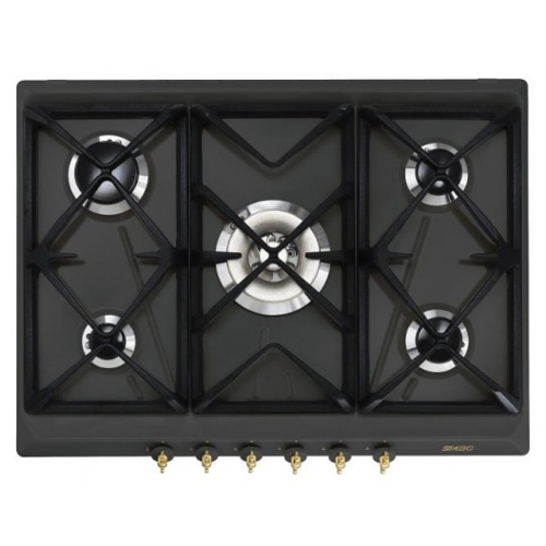 Płyta gazowa marki SMEG charakteryzuje się natychmiastowym wyłączeniem grzania i niskimi kosztami eksploatacji. Wyposażono ją w automatyczną zapalarkę gazu zintegrowaną z pokrętłami oraz żeliwne ruszty.