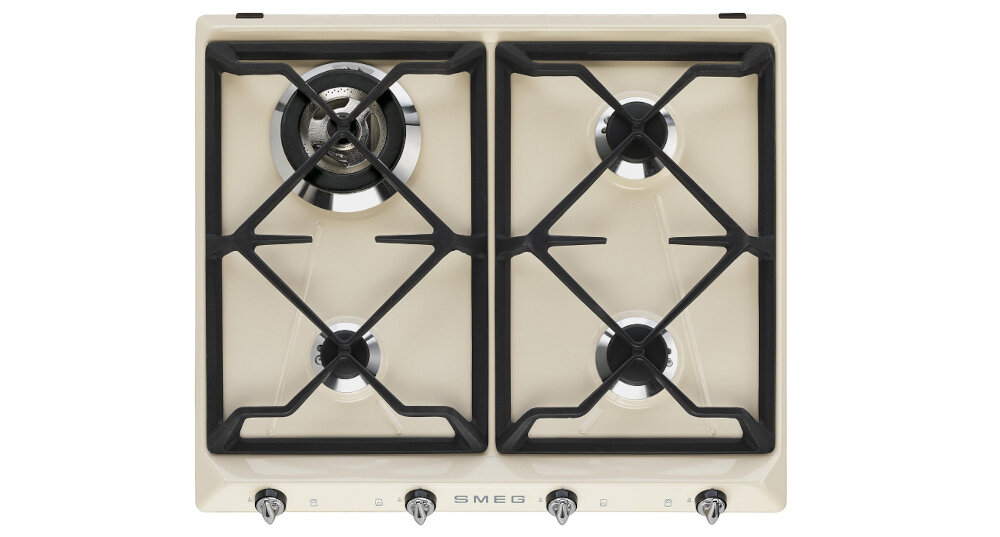 Poznaj emaliowaną, gazową płytę z 4 palnikami, sterowaną mechanicznie za pomocą pokręteł. Płyta o szerokości 59,5 cm - posiada zabezpieczenie przeciwpyłowe, automatyczną zapalarkę gazu, a także żeliwny ruszt. Gotuj wygodnie i tak jak lubisz z marką SMEG.