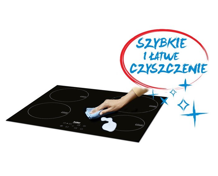 Szybkie i łatwe czyszczenie Ponieważ powierzchnia witroceramiczna płyty nie nagrzewa się, rozlane jedzenie nie będzie się przypalać - tym samym płyta jest łatwiejsza do utrzymania w czystości. |