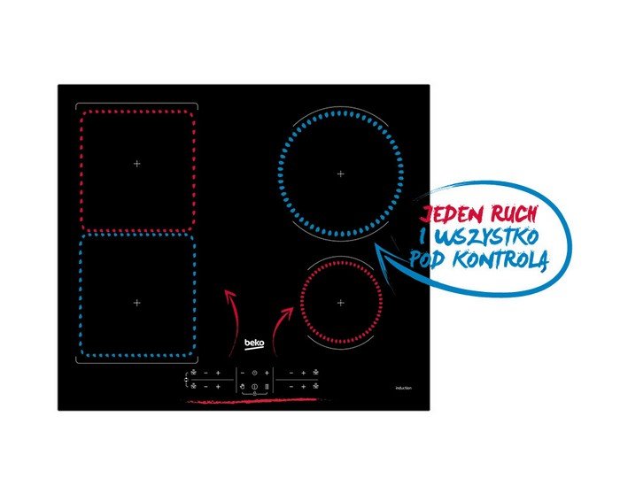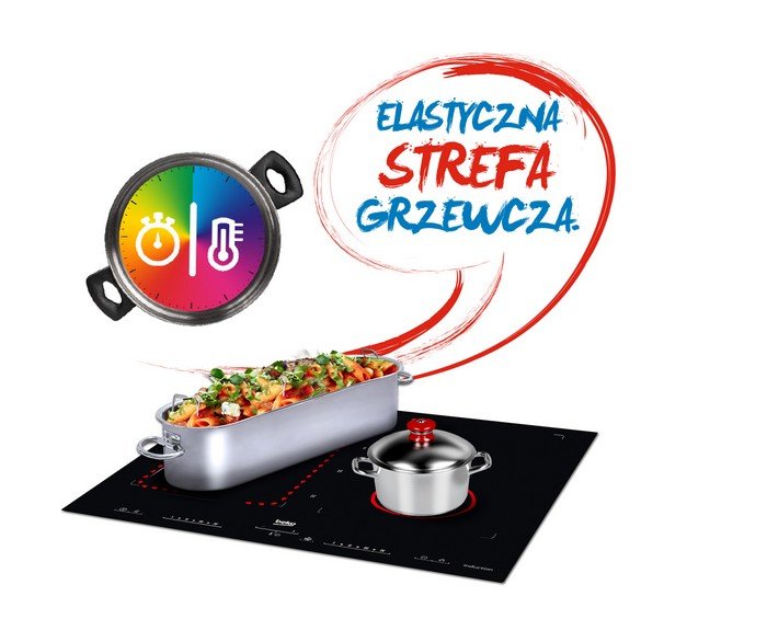 | Technologia indukcyjna IndyFlex™ Nowa technologia Beko IndyFlex™ w płytach indukcyjnych pozwala na użycie większej przestrzeni dzięki elastycznej powierzchni gotowania. Użytkownik ma możliwość połączenia kilku stref grzewczych w jedną większą, co daje większą swobodę gotowania. Dzięki zastosowaniu elastycznej strefy grzewczej, możliwe jest użycie zarówno dużych patelni i garnków, jak i małych rondelków, w zależności od indywidualnych potrzeb. |