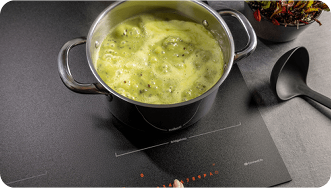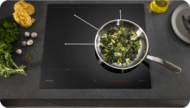 Zaawansowana płyta indukcyjna, która automatycznie przenosi moc i ustawienia podczas przesuwania garnków między strefami. Zapewni stabilne warunki gotowania, precyzję i pełną kontrolę w jednym urządzeniu. Nie musisz na nowo ustawiać każdej strefy grzewczej, wystarczy że po prostu przesuniesz garnek.