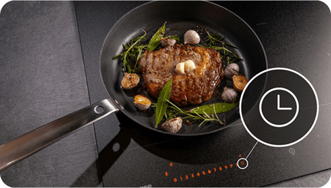 Zoptymalizuj gotowanie za pomocą dwóch timerów. Timer strefowy wyłącza się automatycznie ze względów bezpieczeństwa, podczas gdy ogólny timer umożliwia odliczanie z sygnałem dźwiękowym bez przerywania gotowania. Zaprojektowany do płynnego zarządzania kuchnią.