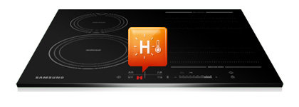 Nasze wskaźniki sterowania i funkcji pozwalają uniknąć oparzeń spowodowanych kontaktem z gorącą powierzchnią płyty. To naprawdę proste: wskaźnik ciepła resztkowego w kształcie litery H sygnalizuje stygnięcie płyty. Gdy duża litera „H” zmienia się w małą „h”, płyta jest na tyle chłodna, że można jej bezpiecznie dotknąć.