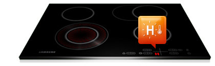 Nasze wskaźniki sterowania i funkcji pozwalają uniknąć oparzeń spowodowanych kontaktem z gorącą powierzchnią płyty. To naprawdę proste: wskaźnik ciepła resztkowego wyświetla literę H, sygnalizując, że powierzchnia jest gorąca. Kiedy oznaczenie na wyświetlaczu znika, powierzchnia jest wystarczająco chłodna, aby móc jej bezpiecznie dotykać. Bezpieczeństwo nigdy jeszcze nie było tak proste.