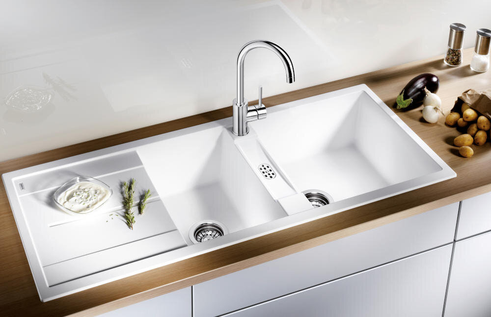O komfort korzystania ze zlewozmywaka BLANCO dbają dwie przestronne komory. Służą one szybkiemu myciu i dobrej organizacji naczyń. Dodatkowo - za trwałość użytkowania zlewozmywaka odpowiada odporność na uderzenia, wysokie temperatury oraz zarysowania. Dzięki tym funkcjom - masz pewność, że BLANCO to zakup na wiele lat.