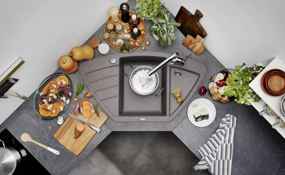Postaw na zlewozmywak, który jest funkcjonalny i spełni Twoje kuchenne oczekiwania. Poznaj 1-komorowy, narożnikowy zlewozmywak BLANCO Zia 9 E 527394 z ociekaczem po lewej i prawej stronie - do osuszania naczyń, owoców czy warzyw z nadmiaru wody. Ten model idealnie komponuje się z kamiennymi i drewnianymi blatami, nie tracąc połysku i zachowując swoją elegancką powierzchnię.