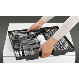 | Sposób na łatwe zmywanie przyborów kuchennych – także długich i nieporęcznych Wyjmowana szuflada na sztućce została zaprojektowana z myślą o optymalnej pojemności i funkcjonalności. Dzięki temu może pomieścić do 15 kompletów sztućców, a także długie i nieporęczne przybory kuchenne. |