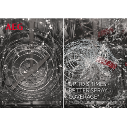 | Satelitarne ramię spryskujące Nawet ciasno ułożone lub większe naczynia powinny zostać dokładnie umyte w zmywarce. Innowacyjne satelitarne ramię spryskujące w nowej zmywarce AEG zapewnia, że kierowana przez nie woda dotrze do każdego zakątka zmwarki. |