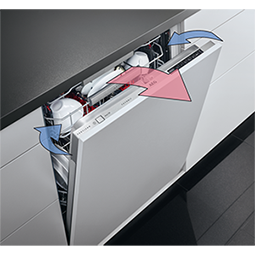 Naturalne suszenie AirDry Umożliwia skuteczne suszenie w wyniku naturalnego przepływu powietrza, by naczynia były idealnie suche i od razu gotowe do użycia. W ostatniej fazie cyklu drzwi zmywarki uchylają się automatycznie na 10 cm, dzięki czemu naczynia suszą się naturalnie. |