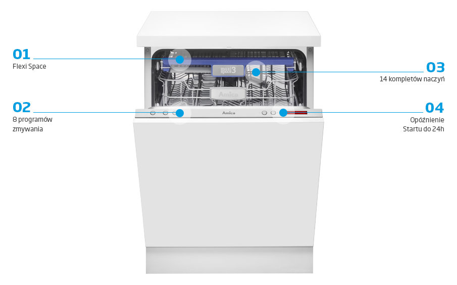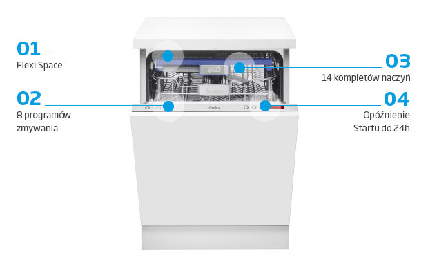 Dowiedz się więcej o funkcjach zmywarek Amica.