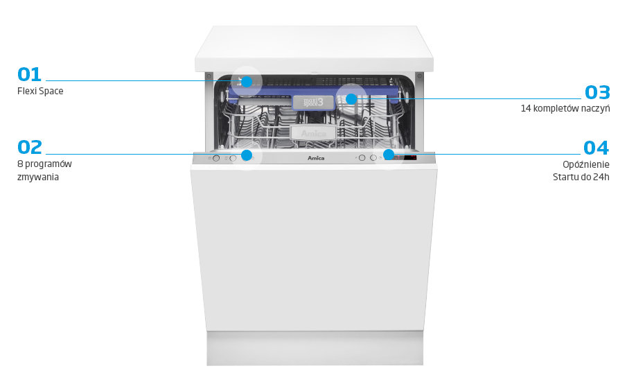 Dowiedz się więcej o funkcjach zmywarek Amica.