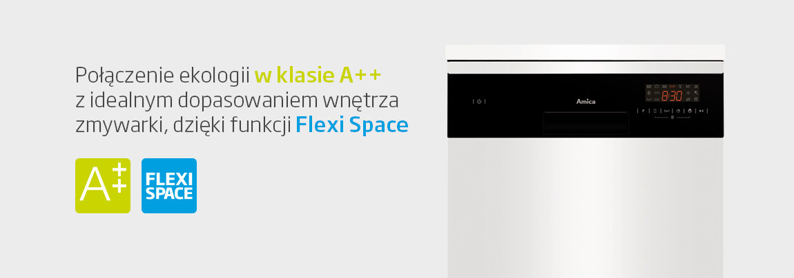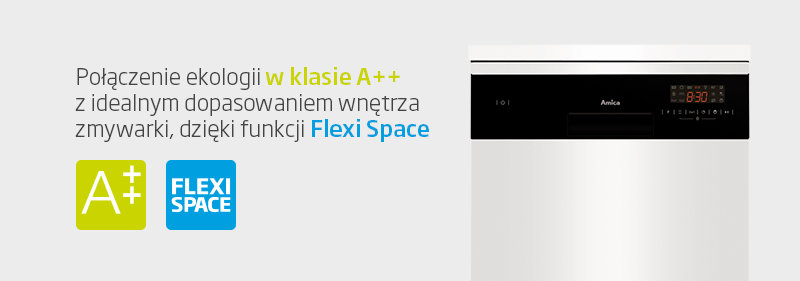 Zestaw inteligentnych rozwiązań zastosowanych w urządzeniach Amica, który pozwala dopasować przestrzeń wewnątrz zmywarki zgodnie z potrzebami użytkownika!