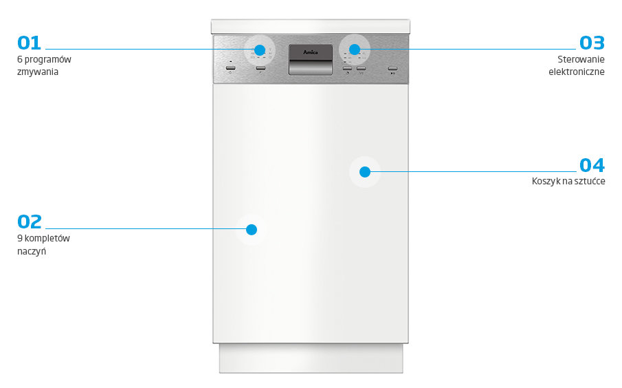 Dowiedz się więcej o funkcjach zmywarek Amica.