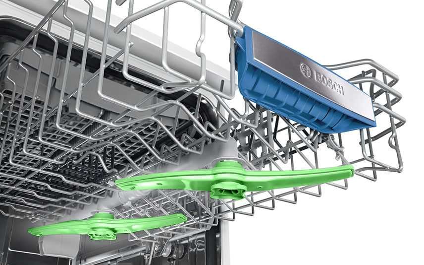 Technika naprzemiennego mycia oraz falisty kształt ramion spryskujących mają duży wpływ na efekt zmywania.