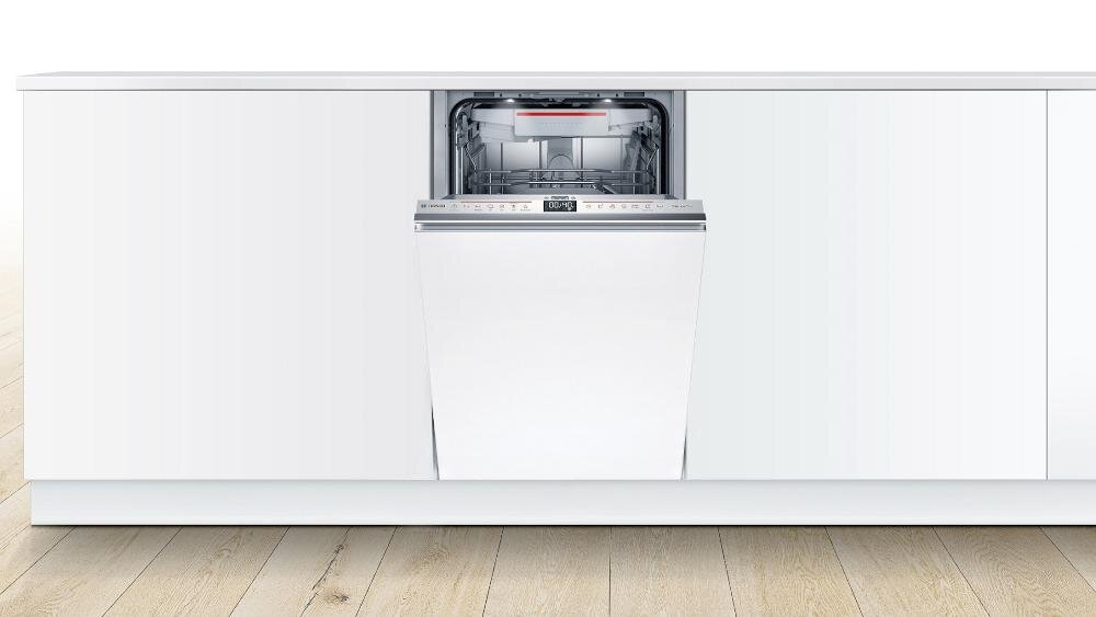 Zmywarka BOSCH SPV6EMX11E wyposażona jest w elektroniczny panel sterowania, który zapewnia wygodną obsługę całego urządzenia. Panel wyposażony jest w elektroniczny wyświetlacz. Panel jest sprytnie ukryty w drzwiach zmywarki.