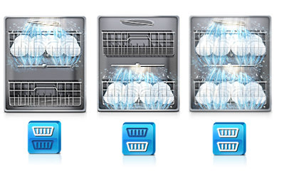 Dzięki udoskonalonej tacy na sztućce zyskujesz większą pojemność. Dodatkowo wyjmowanie sztućców trwa znacznie szybciej, ponieważ nie musisz wyciągać każdego elementu z osobna. Taca jest wyjmowana i przesuwana przy użyciu uchwytu, zapewniając tym samym więcej miejsca w dolnym koszu przy większej liczbie naczyń.