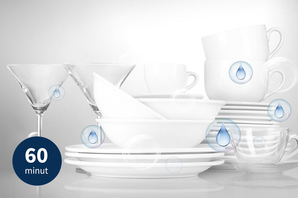 60-minutowy program ekspresowy sprawia, że Twoje naczynia staną się maksymalnie czyste i suche w szybkim tempie. Idealnie sprawdza się w przypadku mniejszych załadunków lekko zabrudzonych naczyń, które nie wymagają intensywnego czyszczenia. Filiżanki, sztućce i talerze w ciągu zaledwie 60 minut przejdą cały cykl mycia i suszenia.