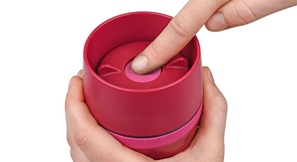 Kubek o pojemności 360 ml wyprodukowany z wysokiej jakości materiałów. Posiada przycisk otwierający. Kubek wyprodukowany z wysokiej jakości plastiku. Kubek ma mechanizm zabezpieczający przed niepożądanym otwarciem. Bezpieczeństwo przenoszenia, brak możliwości wylania płynu. Po prostu zamykamy i bez stresu wrzucamy do torebki, torby sportowej lub samochodu. System Picia 360 stopni. Możliwość picia bez patrzenia na kubek w celu zlokalizowania ustnika. Swobodne użytkowanie w samochodzie lub w nocy.