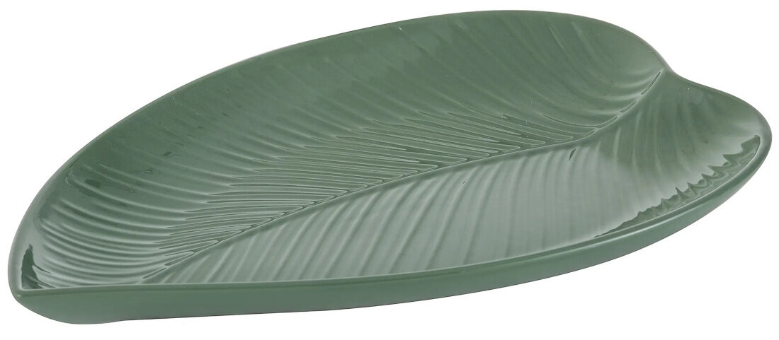 Misa w kształcie egzotycznego liścia, wykonana z trwałej kamionki w zielonym kolorze. Idealna do podawania przekąsek, babeczek, wędliny, serów itp. Misa nadaje się do kuchenki mikrofalowej i można myć w zmywarce.