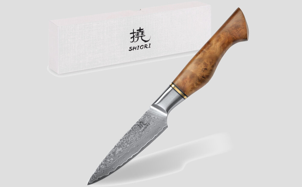 Wytrzymałe ostrze to nie wszystkie zalety tego noża do obierania. Swój niepowtarzalny wygląd nóż Shiori Shōto by Jakub Suchta zawdzięcza także pięknej rękojeści o długości 12,5 cm. Rączka została wykonana z wysokiej jakości drewna jaworowego, dlatego doskonale się prezentuje oraz zapewnia wygodny chwyt. Ten unikalny nóż do obierania został zaprojektowany niezwykle starannie, aby idealnie dopasowywał się do dłoni.