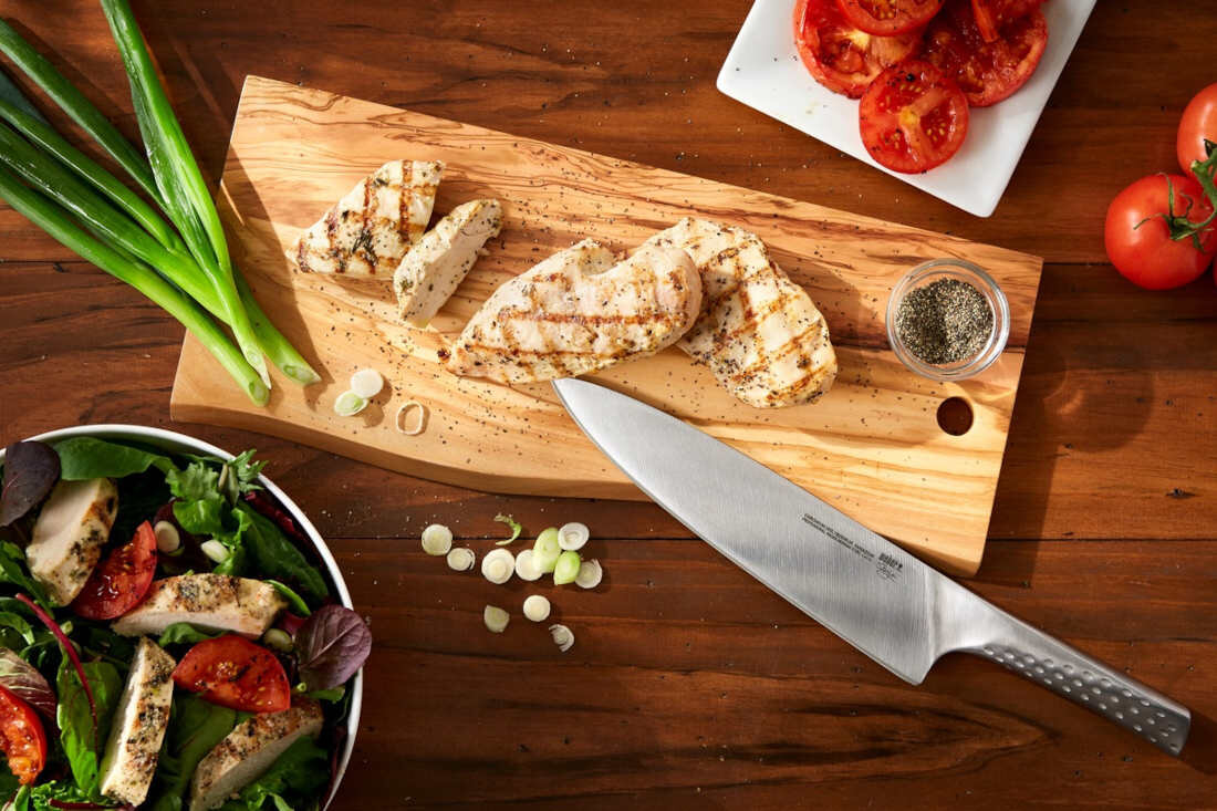 Wykonany w całości ze stali nierdzewnej nóż WEBER Deluxe 17070 to nóż szefa kuchni, który charakteryzuje się szerokim, uniwersalnym ostrzem. Ostrze o długości 12,5 centymetra pozwala swobodnie kroić, siekać i filetować mięso, warzywa czy ryby. Stal nierdzewna, z której wykonany jest nóż, charakteryzuje się dużą twardością i odpornością na kwasy i zasady zawarte w krojonych produktach. Ze względu na wykonanie w całości ze stali nóż ten można myć w zmywarce bez obawy, że ulegnie on zniszczeniu.