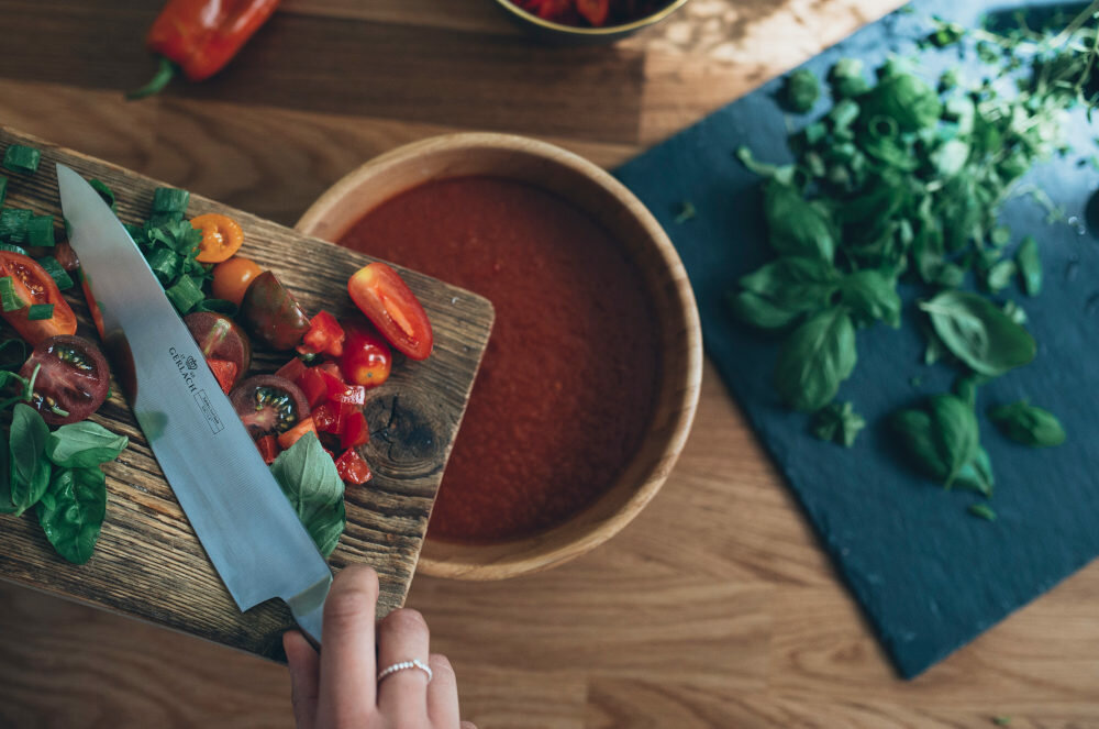 - Nóż szefa kuchni 8" (20 cm) – podstawowe narzędzie w kuchni, idealne do siekania wielu składników.
