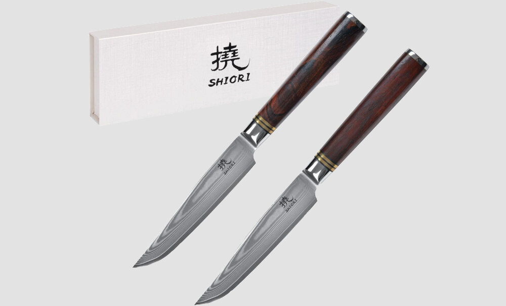 Noże Shiori z serii 撓 Sutēki, przeznaczone do steków są wyjątkowo piękne i wygodne w użytkowaniu, doskonale dopasowują się do każdej dłoni. To produkt sprężysty, twardy, ostry, który wspomoże w codziennych praktykach kuchennych i wzbogaci przestrzeń o elegancki akcent. To idealne narzędzia kuchenne na prezent. Noże zapakowane są w eleganckie pudełko, co dodaje im kunsztu.