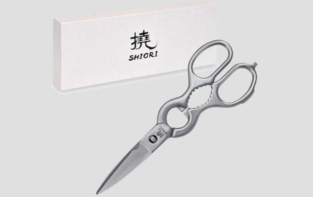 Wielofunkcyjne nożyce kuchenne Shiori Hasami szatkują, kroją i pomagają szybko pozbywać się niechcianych części żywności. Można używać ich do porcjowania surowych i ugotowanych produktów, co oszczędza zarówno pracę, jak i miejsce w kuchennej szufladzie czy na blacie.