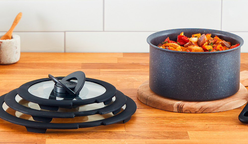 Wszystkie naczynia Ingenio są ze sobą kompatybilne dzięki czemu pokrywek możesz używać do każdego rodzaju naczyń: patelni, garnków, rondli.