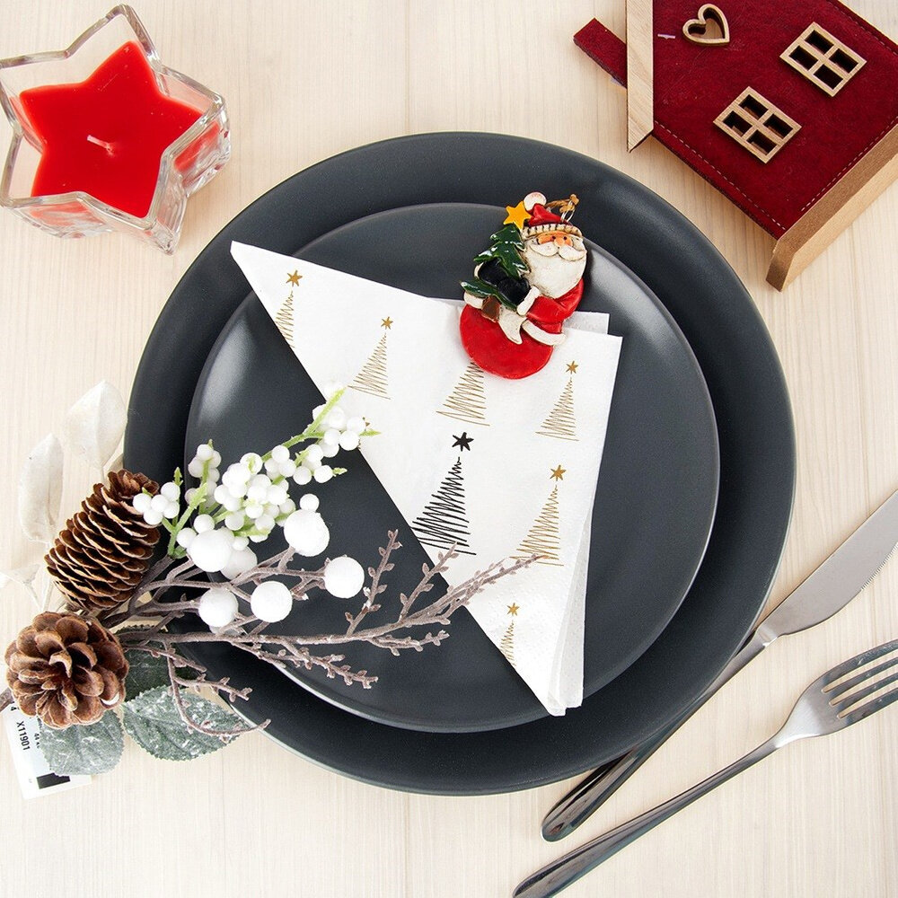 ✅ Świąteczny motyw choinki - Wykonane z papieru w kolorze białym z eleganckim złotym nadrukiem choinek, które wprowadzą ciepły, świąteczny nastrój na Twoim stole.