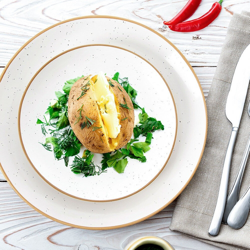 ✅ Efektowny design - Utrzymany w modnej kolorystyce, która pięknie prezentuje się na stole wraz z inną zastawą. Talerz posiada klasyczny, okrągły kształt.
